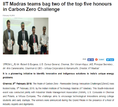 NDTV - CZeroC The New Indian Express - Mega Waste Management Projects in TN The New Indian Express - IIT Carbon Zero Challenge